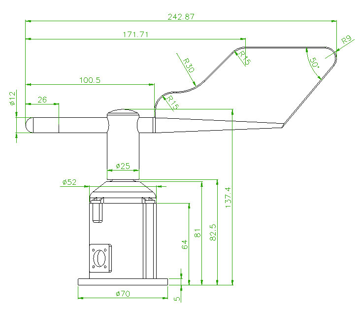 采用法蘭安裝方法,螺紋法蘭連接使風(fēng)向傳感器下部管件牢牢固定在法蘭盤上,底盤Φ70mm,在Φ61mm的圓周上開(kāi)四個(gè)均Φ5mm的安裝孔,使用螺栓將其緊緊固定在支架上,使整套儀器保持在最佳水平度,確保風(fēng)向數(shù)據(jù)的準(zhǔn)確性,法蘭連接使用方便,能夠承受較大的壓力。